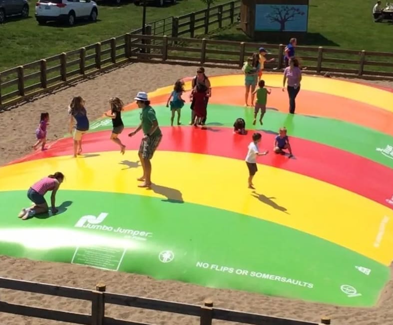 2. Safety features are very important on jumping pillows. There must be a fence all around the equipment with 1 entrance and exit that has to have some kind of latch to ensure it's closed when not getting used.